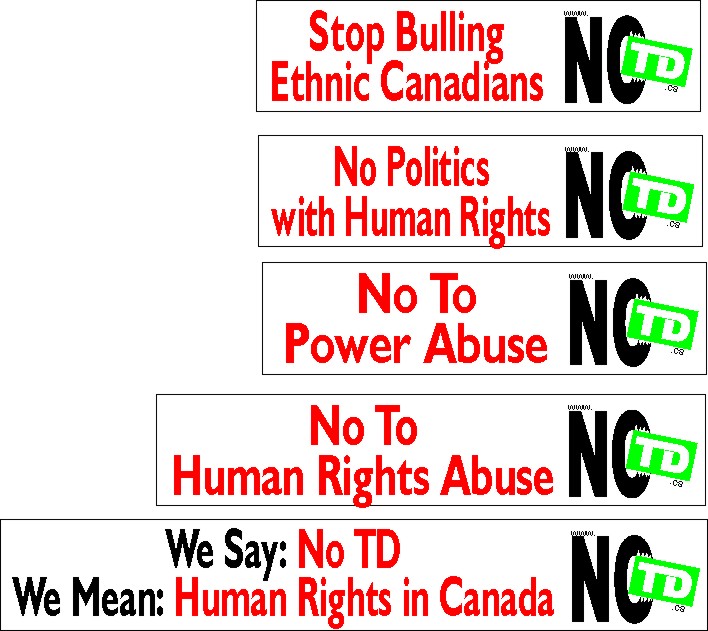 Welcome to No Td "We say NO TD! We mean Human Rights in Canada!" |