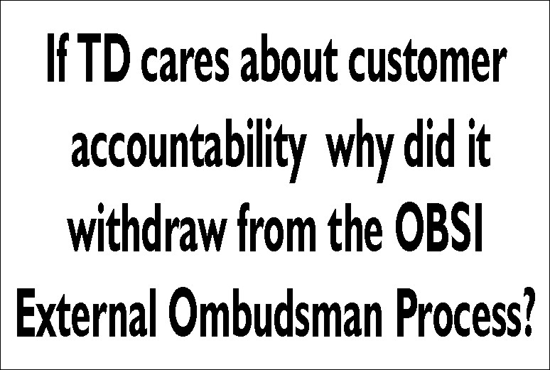 If TD cares about customer accountability why did it withdraw from the OBSI External Ombudsman Process? |