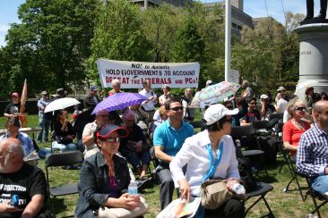 در رابطه با حمایت از کارگران مصدوم در تاریخ شنبه 31 ماه می ساعت هفت شب در مقابل پارلمان انتاریو، به همت گروه Women of Inspiration برنامه "شب بیداری" با حضور تعدادی از نمایندگان سندیکا ها، ادارات بهزیستی کارگران، وکلای مدافع حقوق کارگران، مصدومان و خانواده هایشان، برقرار گردید. در طول شب افرادی که با این حرکت از قبل آشنائی داشته، به این گردهمائی پیوسته، شب را به صبح گذرانده و یا بعد از چند ساعتی آنجا را ترک کردند. گروه "همبستگی و حمایت" نیز جهت اطلاع رسانی در کامیونیتی در این گردهمائی حضور یافته و فیلم هائی تهیه نمود. شبکه تلویزیونی CBC با پوشش خبری خود از این فعالیت، بعد وسیعتری به آن داد.